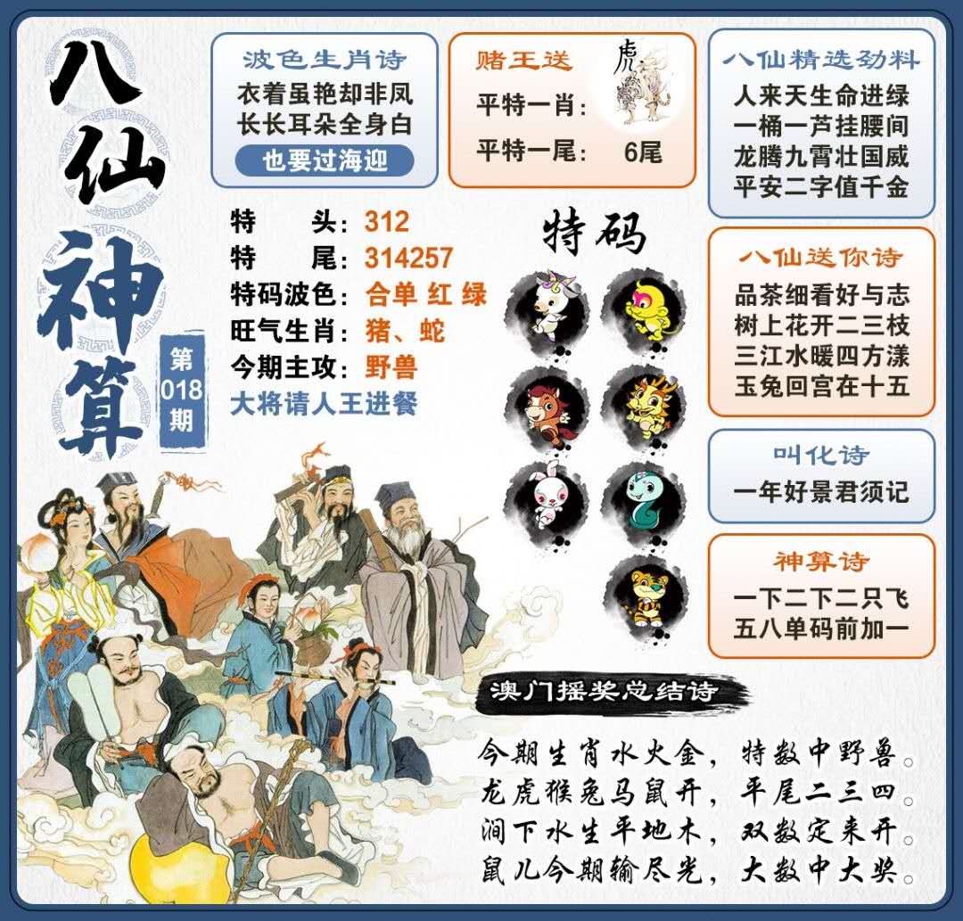 | 五福肖:鼠、虎、兔、蛇、猴[龙] |