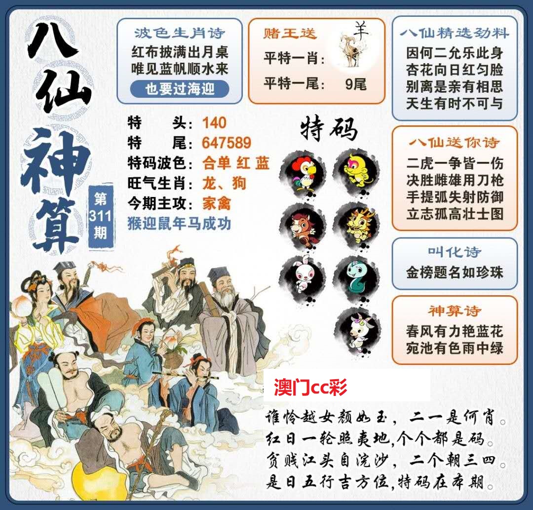 | 天肖:兔、马、猴、猪、牛、龙 |